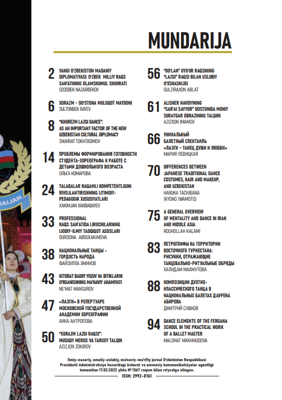 2024-yil 2-soni “Nafosat olami” – ilmiy-nazariy, amaliy-uslubiy, ma’naviy-ma’rifiy jurnalining 2024-yil 2-soni Jurnalning 2024-yil 2-sonini yuklab olish