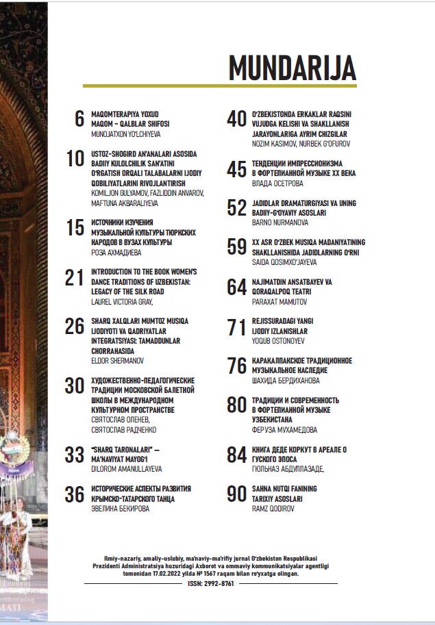 2024-yil 3-soni “Nafosat olami” – ilmiy-nazariy, amaliy-uslubiy, ma’naviy-ma’rifiy jurnalining 2024-yil 3-soni Jurnalning 2024-yil 3-sonini yuklab olish